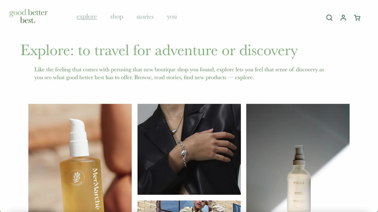 Stories provide information about the makers and brands sold on good better best, as well as how to live your good better best life through stories about lifestyle, health and wellness, travel, and more.